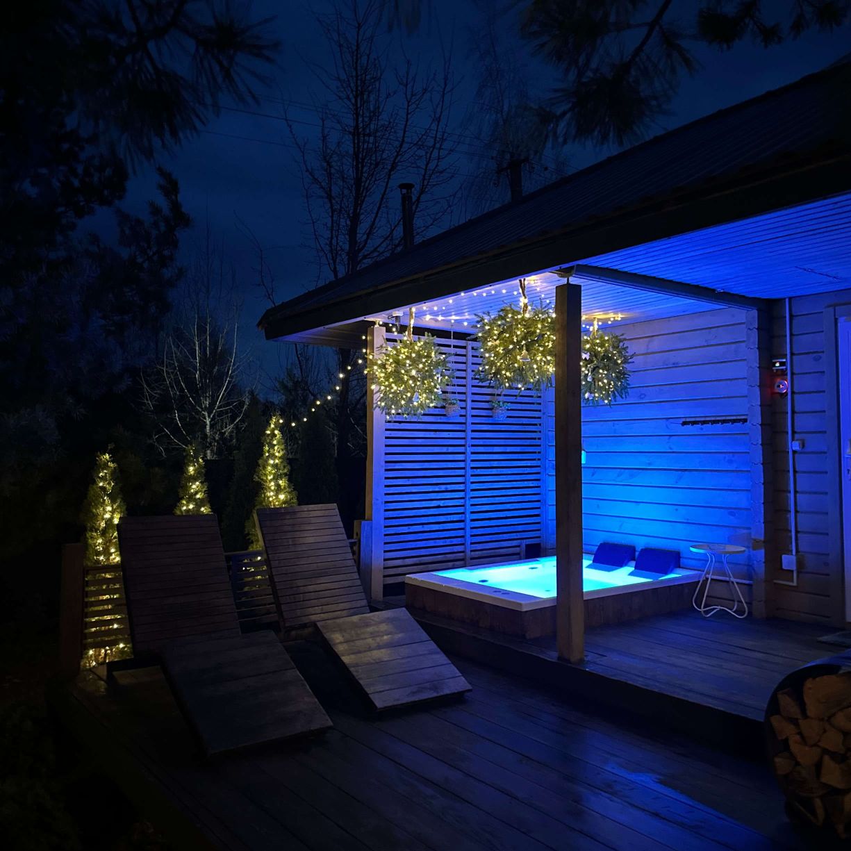 Горячая купель Emi House – это не просто ванна с горячей водой, а настоящее SPA под открытым небом. Она оборудована подсветкой и гейзером, создающими неповторимую атмосферу отдыха.