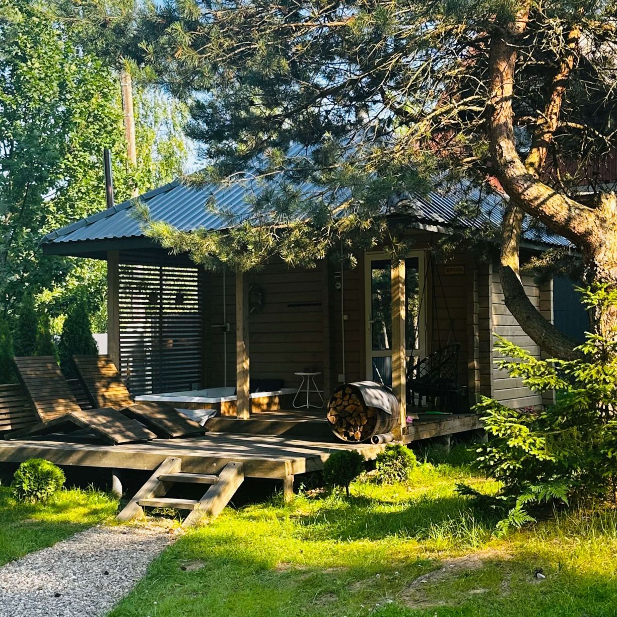 - Природа вокруг – купель расположена среди высоких сосен, что добавляет уюта и уединения.